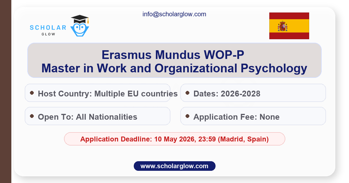 The Erasmus Mundus Joint Master Degree (EMJMD) in Work, Organizational and Personnel Psychology (WOP-P) offers a unique opportunity for international students to pursue advanced studies in Europe. Hosted by a consortium of leading European universities and supported by the Erasmus+ Programme of the European Union, this fully funded program is designed to develop expertise in work, organizational, and personnel psychology. The program spans two years and is tailored for those aiming to become practitioners or researchers in a global context.