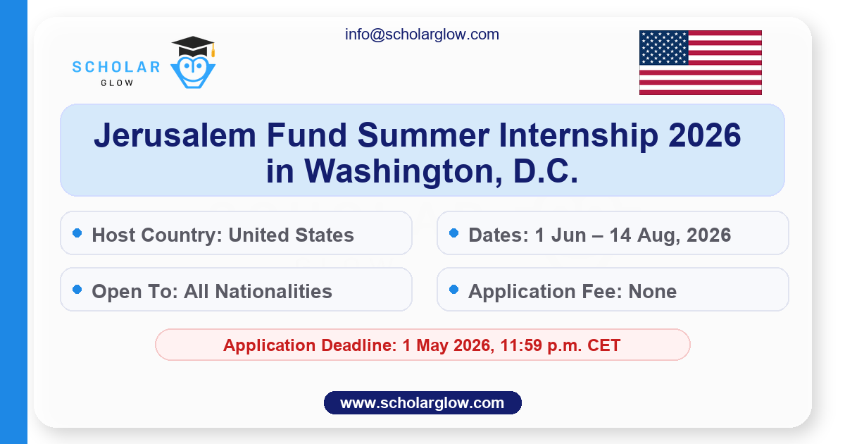 Looking to gain hands-on experience in policy, research, and cultural programming related to Palestine and the Middle East? The Jerusalem Fund for Education and Community Development is now accepting applications for its Summer 2026 Internship Program in Washington, D.C. This fully funded opportunity is ideal for international students and recent graduates interested in U.S.–Palestine relations, humanitarian work, and public policy. The program runs from June 1 to August 14, 2026, offering a unique chance to work alongside professionals and contribute to impactful projects.
