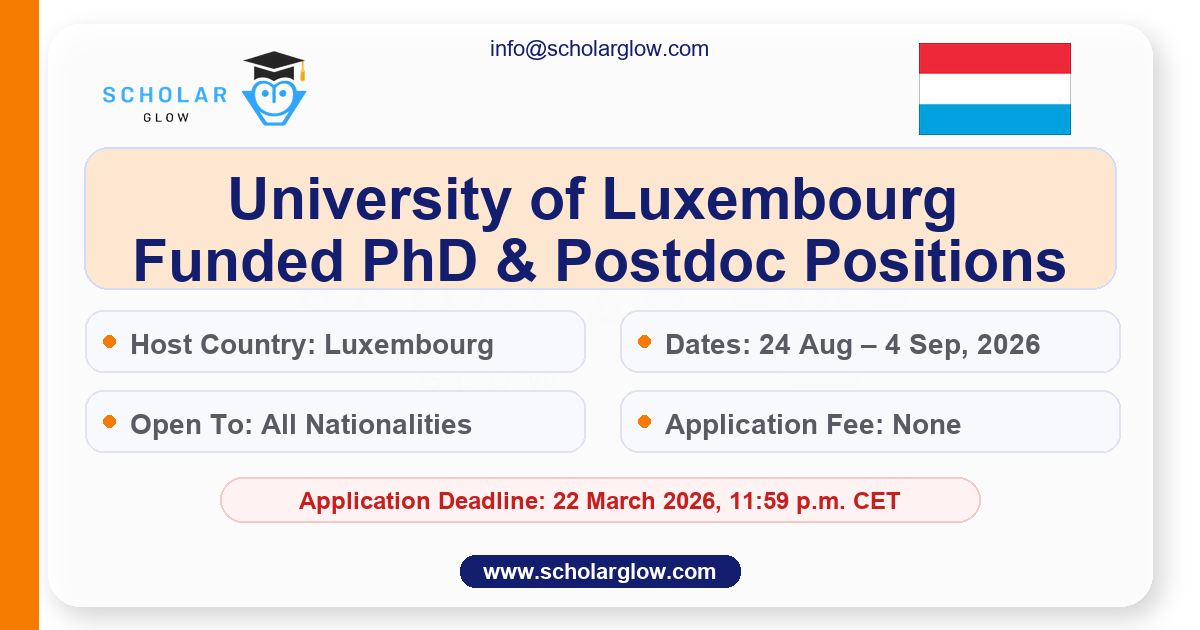 The University of Luxembourg is now accepting applications for its fully funded PhD and Postdoctoral research positions for 2026. Located in Luxembourg, this leading European university offers a vibrant international research environment and excellent career development opportunities. These positions are open to international students from all backgrounds, with flexible start dates and a variety of research fields including Psychology, Multilingualism, Education, and Materials Science.